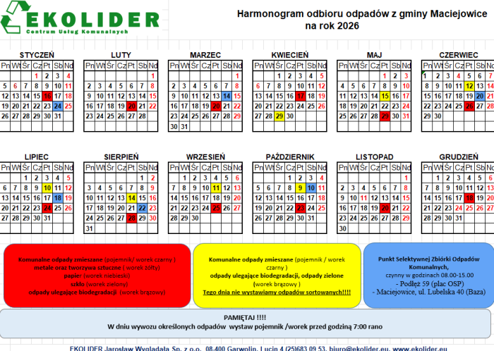 MACIEJOWICE- harmonogram 2026 – do pobrania
