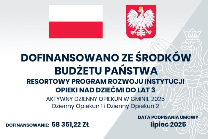 W 2025 r. funkcjonowanie instytucji dziennego opiekuna było współfinansowane z dotacji celowej ze środków Funduszu Pracy oraz ze środków pochodzących ze świadczenia Aktywnie w żłobku.