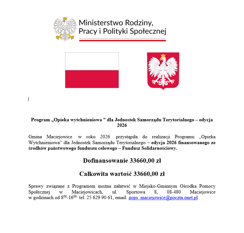 Informacja o przystąpieniu do realizacji Programu „Opieka Wytchnieniowa” dla Jednostek Samorządu Terytorialnego – edycja 2026 finansowanego ze środków państwowego funduszu celowego – Fundusz Solidarnościowy
