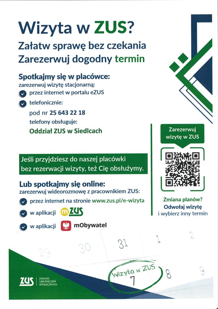 Rezerwacja wizyt w ZUS nie ogranicza innych form kontaktu z nami. Jeśli nie umówisz się na spotkanie w naszej placówce, zawsze uzyskasz pomoc, ale będziesz musiał zaczekać na obsługę.