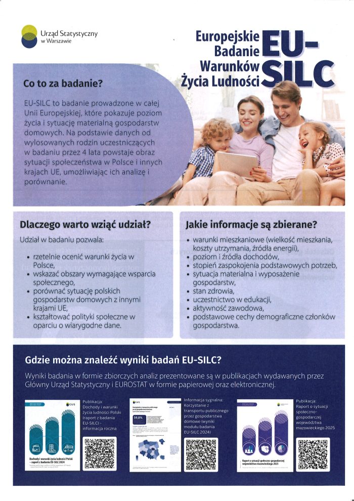 Informacje na temat Europejskiego badania Warunków Życia Ludności EU-SILC prowadzonego przez urząd statystyczny