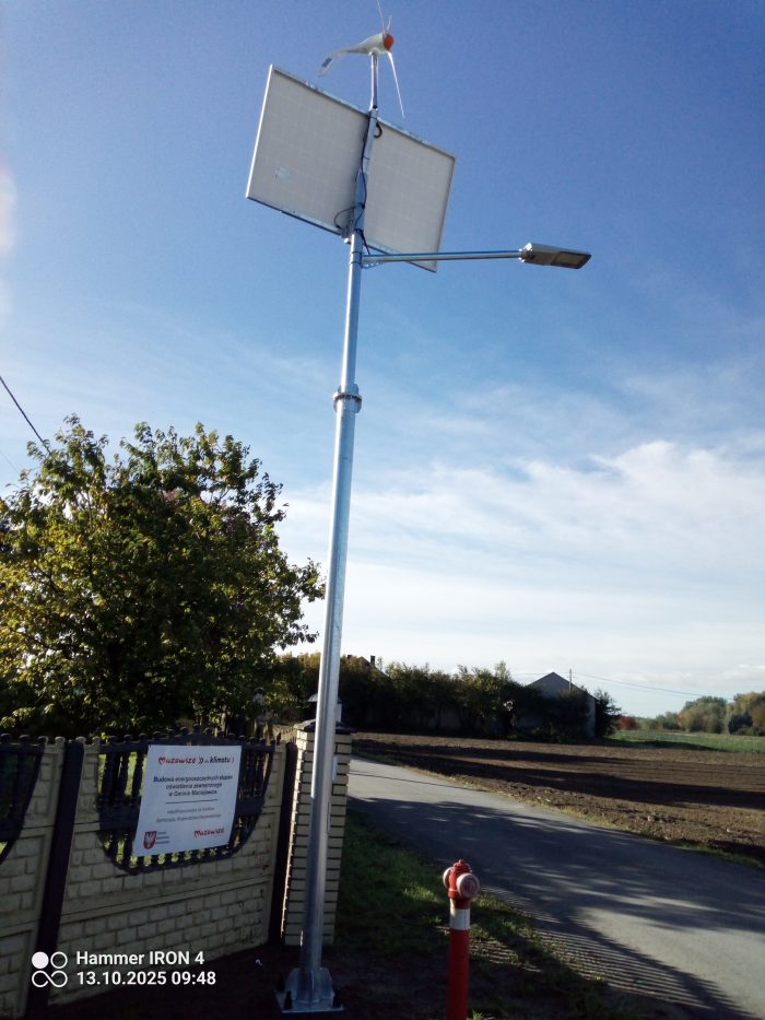 W ramach zadania w gminie Maciejowice wykonano montaż łącznie 8 sztuk nowoczesnych, energooszczędnych słupów oświetleniowych hybrydowych (panel fotowoltaiczny + zasilanie sieciowe), o wysokości 6 metrów. Słupy wyposażone zostały w oprawy LED o mocy zapewniającej strumień świetlny około 4000 lm, co umożliwia efektywne i równomierne oświetlenie terenów publicznych w poszczególnych miejscowościach.