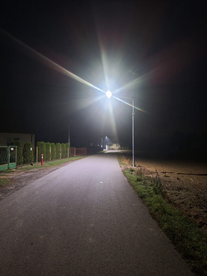 Dzięki zastosowaniu innowacyjnych rozwiązań, udało się doświetlić miejsca które oddalone są znacznie od istniejących linii oświetlenia ulicznego.