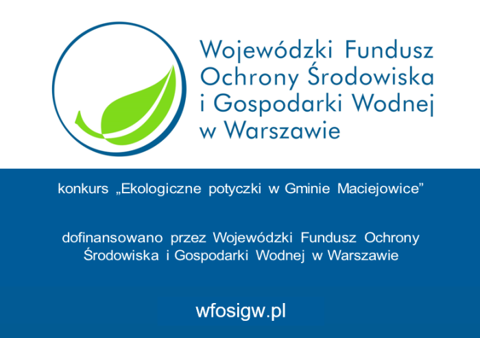 „Utylizacja płyt azbestowo-cementowych z pokryć dachowych na terenie gminy Maciejowice” dofinansowano dzięki wsparciu Ministerstwa Klimatu i Środowiska, Narodowego Funduszu Ochrony Środowiska i Gospodarki Wodnej i Wojewódzkiego Funduszu Ochrony Środowiska i Gospodarki Wodnej w Warszawie w kwocie 35.000,00 zł.